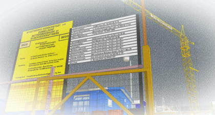 signage, and Liebherr crane