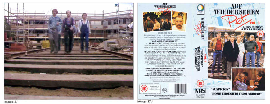A complete collection of the earliest Auf Wiedersehen, Pet VHS video releases can be viewed here. In the background of both images we can clearly see the fifth and final set building our lads worked on here at Elstree Studios. Let’s take a closer look at ‘Set Building 5’ and find out why it was very different to the first four...