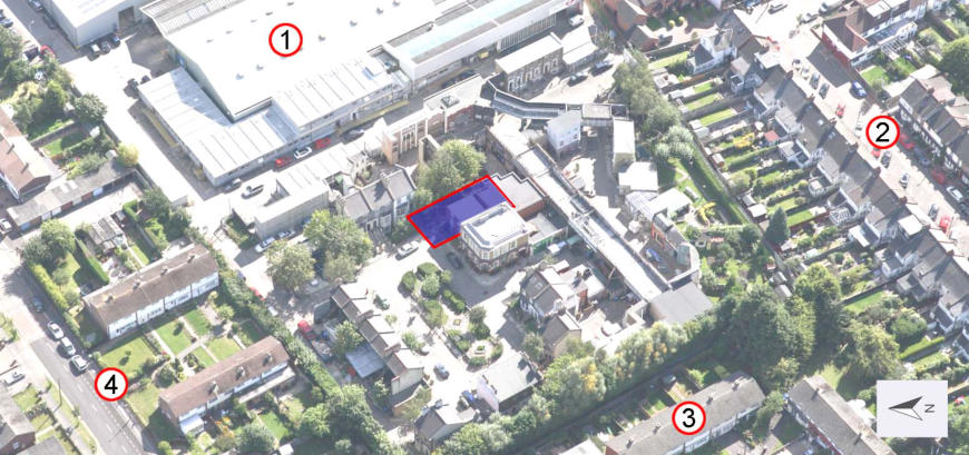 But this fire was not the only spectacular televised blaze to make history on the back lot of Elstree Studios. Only a few yards from where 'Hut B' once stood currently stands EastEnders 'Queen Vic' pub which was also set on fire during two separate storylines; once in 1992 by Grant Mitchell (Ross Kemp) as an insurance scam and once in 2010 by Phil Mitchell (Steve McFadden) to hurt his mother Peggy. Clearly the Mitchell brothers followed in the footsteps of Moxey's passion for arson!Image 54 illustrates an aerial view of today’s EastEnders film set looking east towards Elstree Studios. The blue box bound in red behind the dominant ‘Queen Vic’ pub identifies the approximate position of 'Hut B' superimposed over the BBC's fictional 'Walford Community Centre'!